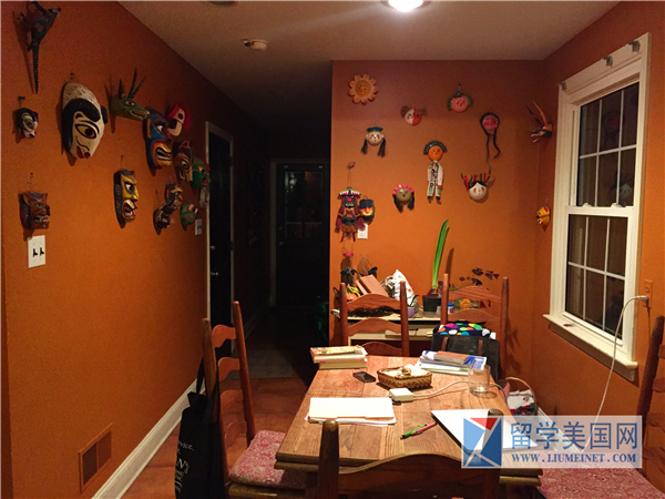 JRL同学的住家是一个艺术气息非常浓的家庭,屋里所有房间都挂满了艺术作品,甚至是厨房,可见这个家庭对艺术的喜爱。