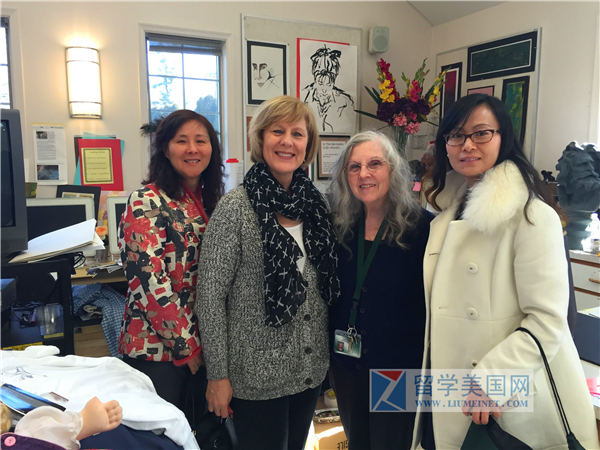石老师很荣幸的参观了学校的艺术工作室,见到了80多岁老人仍然在工作,她帮助了很多学生申请到顶尖的艺术大学,有一所大学以她的名义授予了奖学金。同時,她还负责帮助学生制作学校戏剧演出的服装。