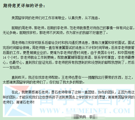 恭喜留美网Y同学收获福利斯特里奇中学录取