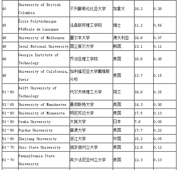 2017美国建筑学专业世界大学排名