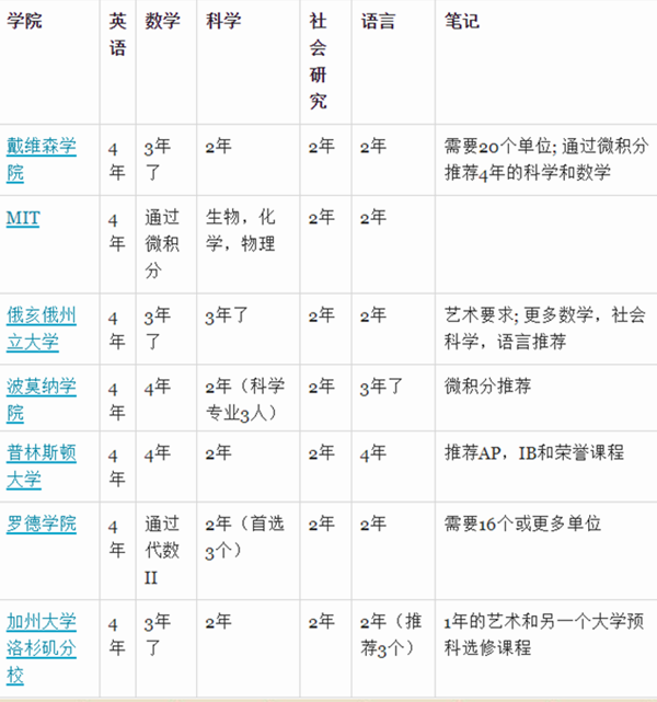下表显示了对不同类型的选择性大学进行抽样的最低课程建议。始终牢记“最低限度”只是意味着您不会立即被取消资格。最强的申请人通常超过最低要求。