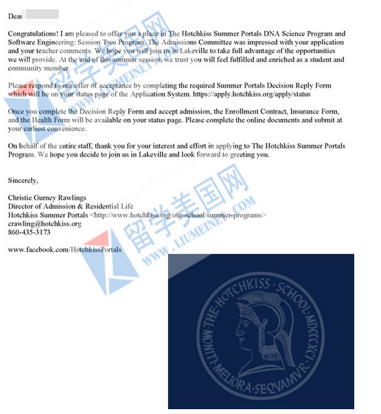 录取捷报 | 恭喜留美网S同学斩获美国顶尖寄宿高中波特女子高中Miss Porter's School的录取offer~