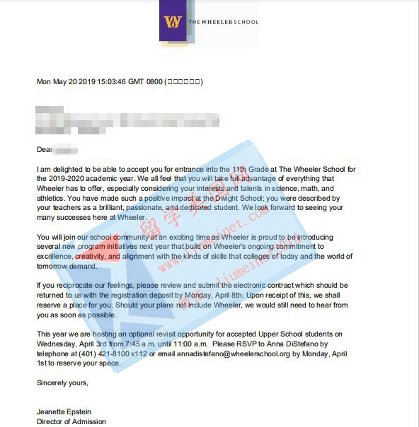 恭喜L同学收获维勒学校(Wheeler School)Offer