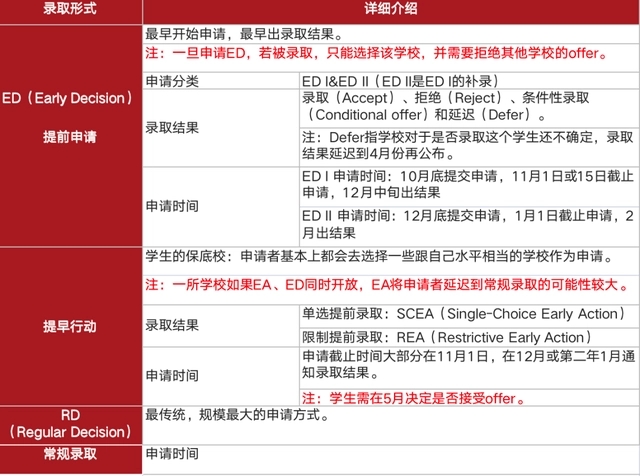 ED-Early Decision,只能申请一所学校,属于绑定性质,需要学生,大学和高中三方签署协议,录取后必须入读,且需要取消其他院校申请。提供ED选项的院校主要有:哥伦比亚大学,芝加哥大学,杜克大学,宾夕法尼亚大学,约翰霍普金斯大学,达特茅斯学院,西北大学,布朗大学,华盛顿大学圣路易斯,康奈尔大学,范德堡大学,莱斯大学,埃默里大学,卡耐基梅隆大学,弗吉尼亚大学,塔夫斯大学,维克森林大学,纽约大学,罗切斯特大学,波士顿大学等。