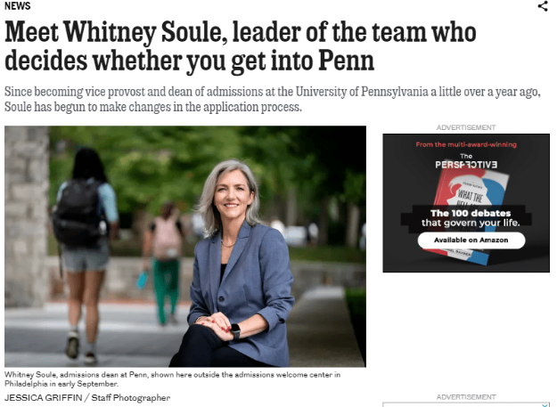 近日,《费城问询者报》(The Philadelphia Inquirer) 采访了宾夕法尼亚大学现任招生办主任Whitney Soule,她就目前宾大的招生工作、录取标准以及申请材料变化等做出了回复。今天整理出此次采访内容,希望对大家了解宾大招生、未来申请宾大有所帮助。