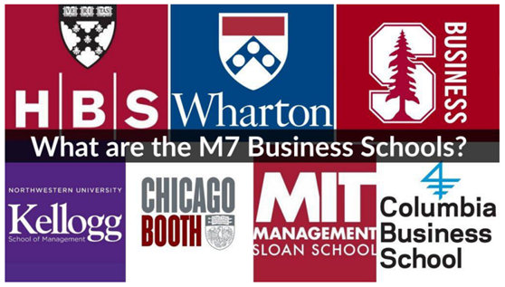 M7全称是“Magic 7”,是指哈佛大学商学院、宾夕法尼亚大学沃顿商学院、哥伦比亚大学商学院、斯坦福大学商学院、西北大学凯洛格商学院、芝加哥大学布斯商学院、麻省理工学院斯隆商学院这七所顶尖商学院。