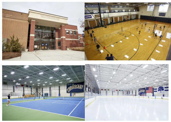 斯科特·A·纳尔逊田径中心,占地40000平方英尺,设有两个篮球场、壁球场、健身中心和运动训练设施,Gerald LaGrange Field House在冬季设有室内冰场,在春季和秋季转为网球场,四块草地,健身中心。