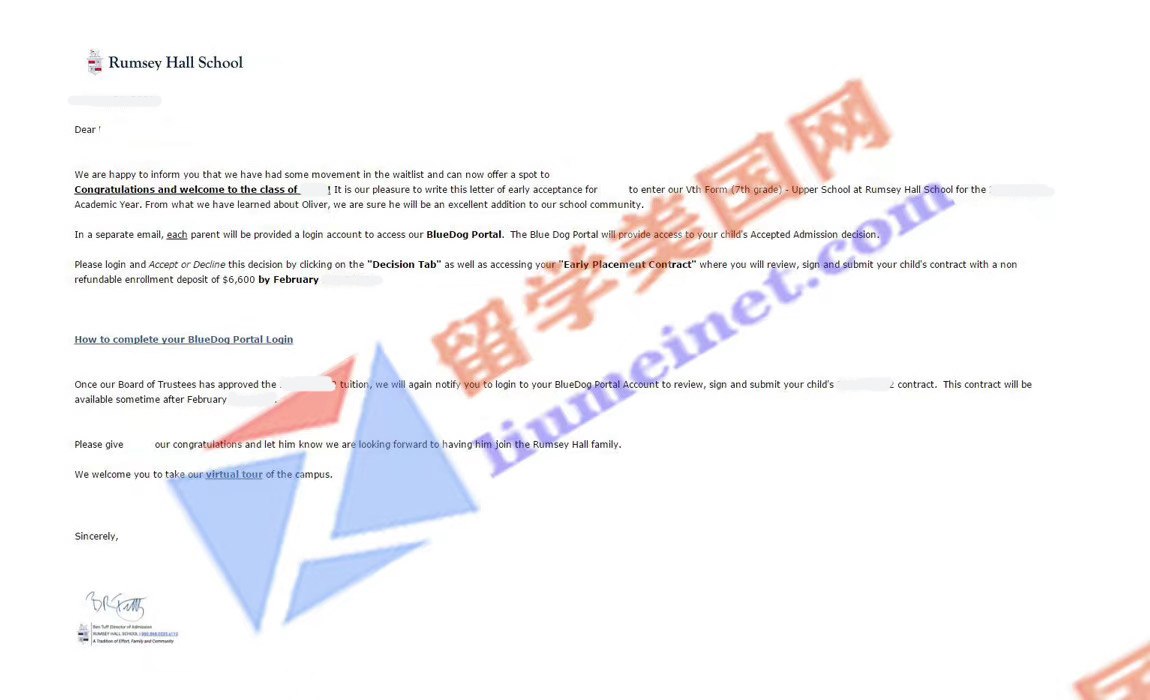 录取学校:岚基昊学校Rumsey Hall School