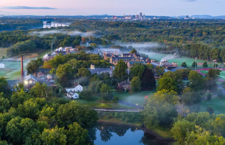 学校坐落于美国的康涅狄格州的西部,距离Bradley国际机场大约55英里,到纽约为90英里,和波士顿之间有120英里的距离。