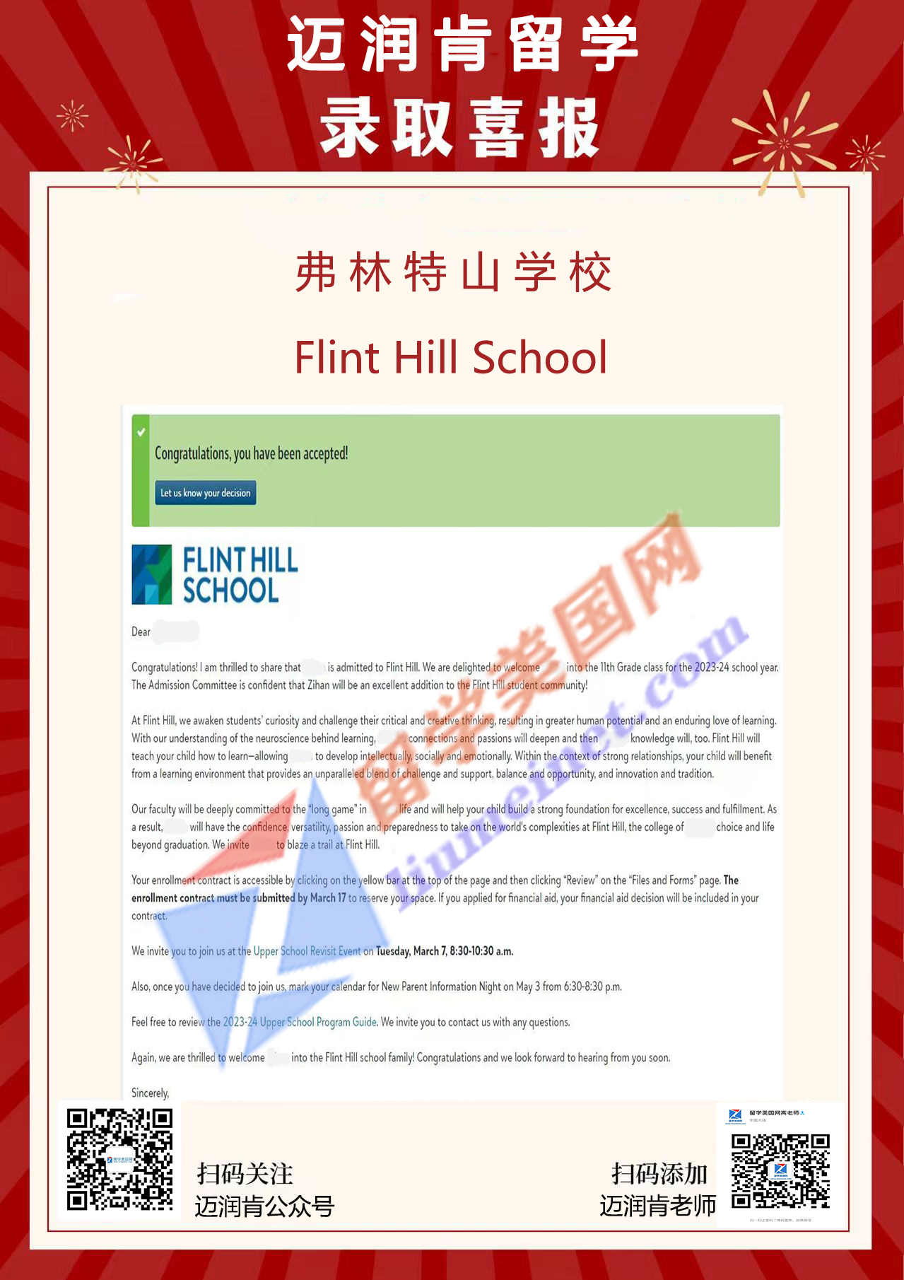 随着3.10快要到来,我们留美网每天都会收到新的录取,这不今天我们又新增2枚录取,一所寄宿的一所顶尖走读的,想必说到这里大家都想知道,到底新增哪些学校呢?下面就让我们一起来看看吧~