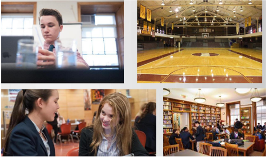 校园面积比较小只有2英亩,国际学生比例很少,无ESL课程。学校是由教堂改建而成,著名美剧Gossip Girl以该校为背景拍摄。设有两个校区,一个六层楼的体育馆,一个五层楼的健身房,图书馆,篮球馆,操场,排球馆等,计算机设备齐全,提供在线图书馆等。