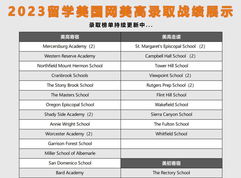 迈润肯留学2023年美高录取战绩呈现(更多详情参见文末:成功案例)