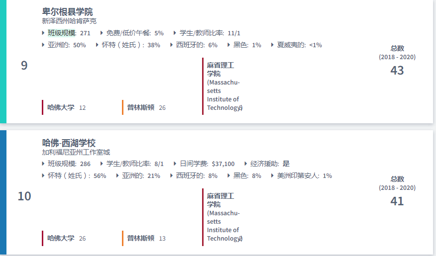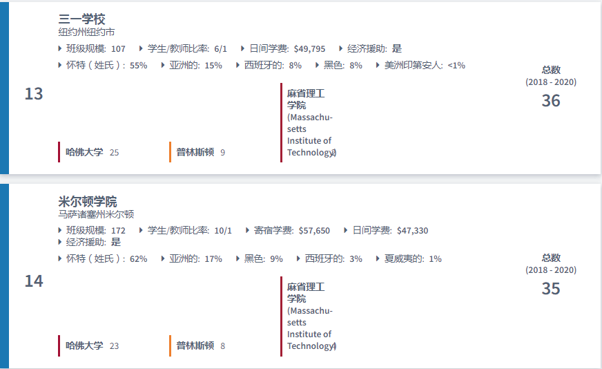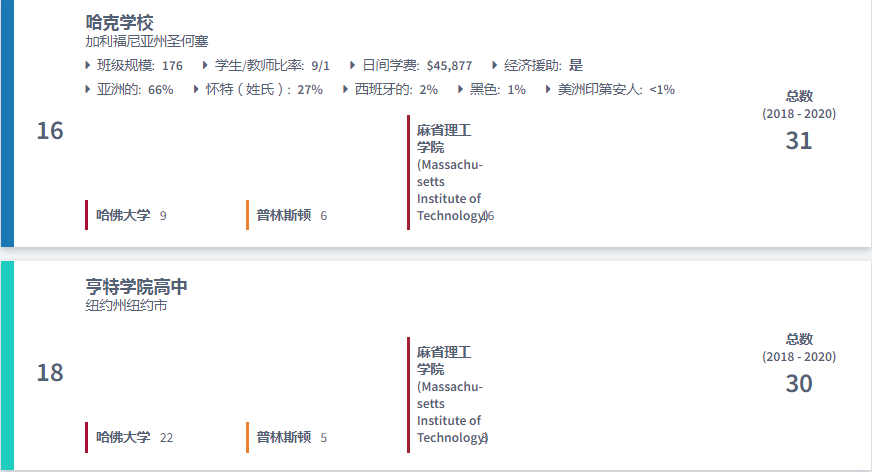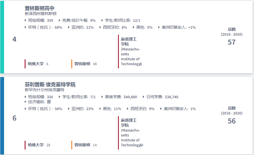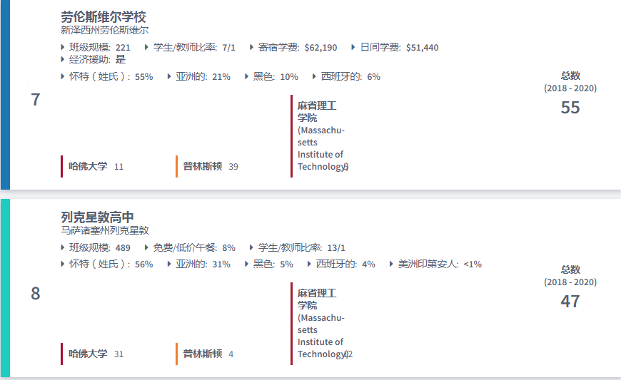 美国最好的高中排名:哈佛、普林斯顿和麻省理工学院2020录取人数