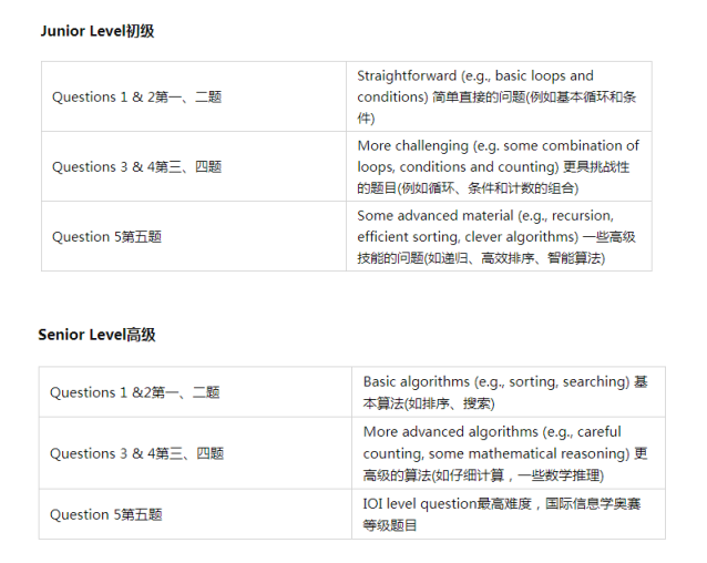 ·Junior Level初级:any student with elementary programming skills任何具有基础编程技能的学生