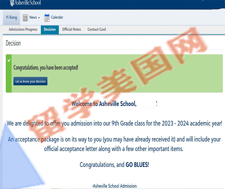 【录取喜报】留美网学子W同学斩获阿什维尔学校录取offer