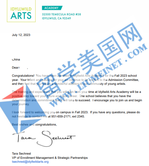 【录取喜报】恭喜留美网学子X同学成功斩获艾迪怀德艺术高中录取offer!