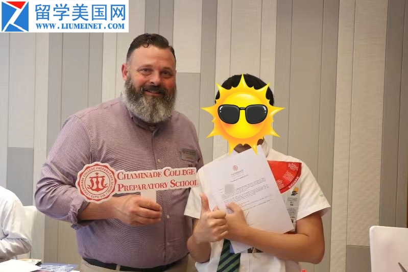 留美网学子斩获查米纳德预备中学录取offer,与招生官合影
