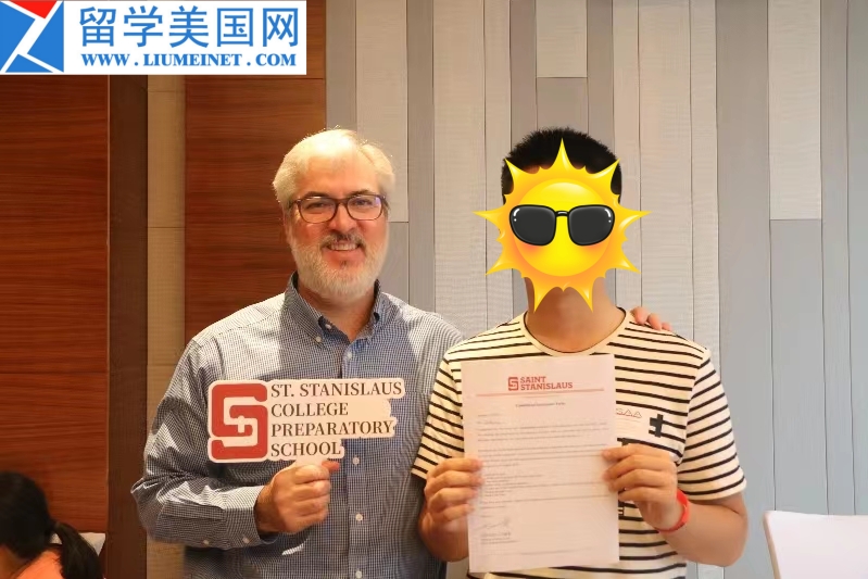 留美网学子斩获圣斯坦尼斯洛斯学院offer,与招生官合影