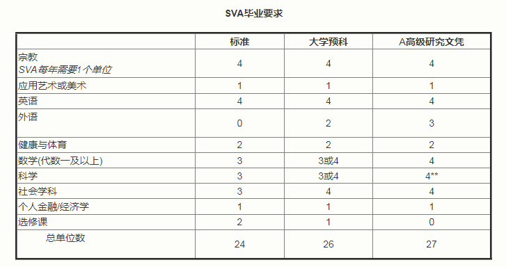 核心课程:宗教、应用艺术或美术、英语、外语、健康与体育、数学、科学、社会学科、个人金融/经济学