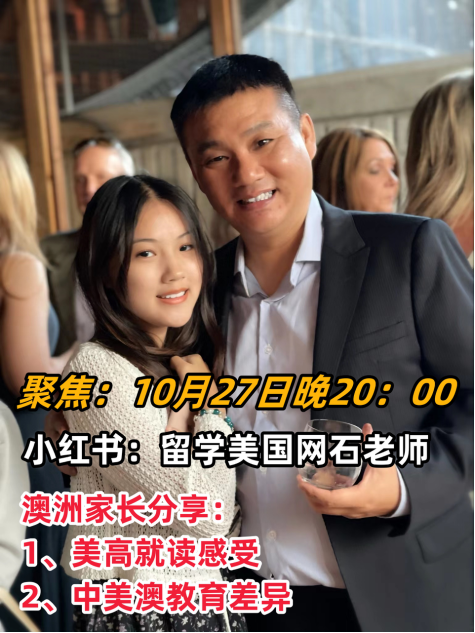 【聚焦10月27日晚20:00】澳洲家长分享就读美高感受!中美澳教育差异!拭目以待!