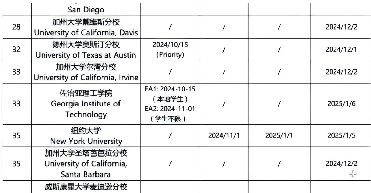 大部分学校ED1的截止日期是11月1日或者之后,ED2的截止日期主要集中在次年的1月1日或之后。