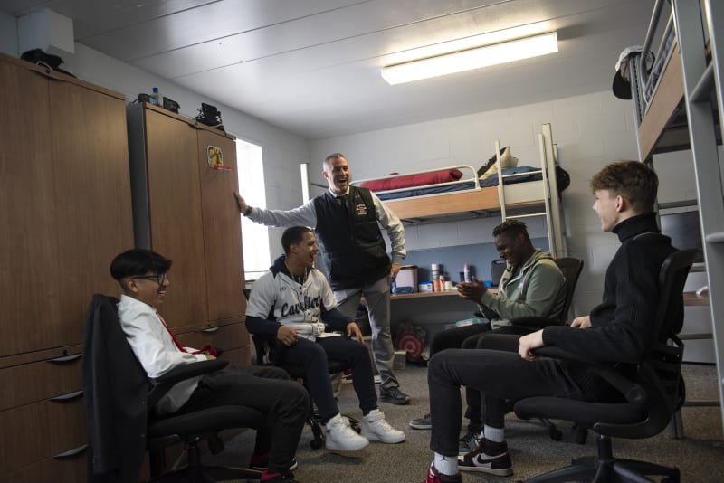 每个宿舍楼层有两名教职员工,最多分配16名学生。宿舍房间是2人间,每个学生有一张床,梳妆台,衣柜和书桌;每层楼共用浴室,公共区域和厨房区域。学生们最早在周日晚上到学校,待到周五下午。在周末,学生们回家与家人、朋友或寄宿家庭团聚。