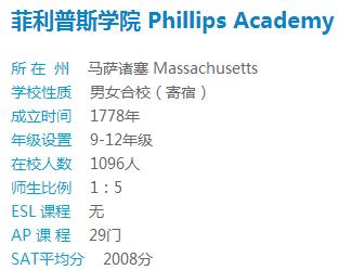 以美国著名寄宿高中Phillips Academy Andover安多福菲利普斯学院为例: