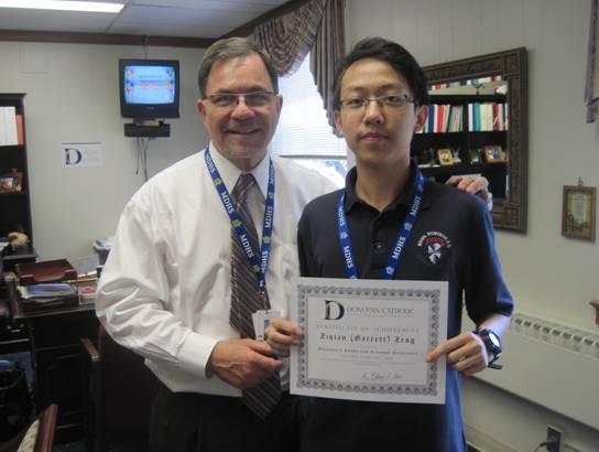 曾同学获学校最高学术荣誉奖,与校长的合影。