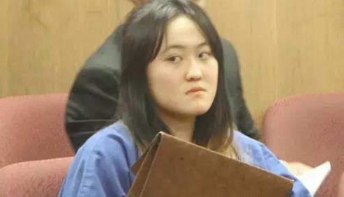 翟芸瑶斜着旁听席中的受害者家属(侨报记者高睿摄)