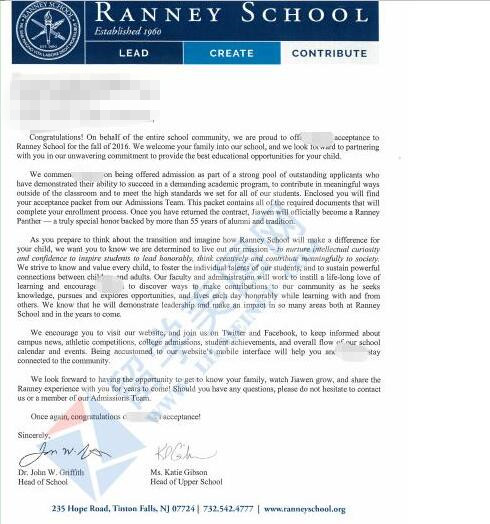 10、留美网Y同学获得东部地区Ranney School兰尼学校的offer