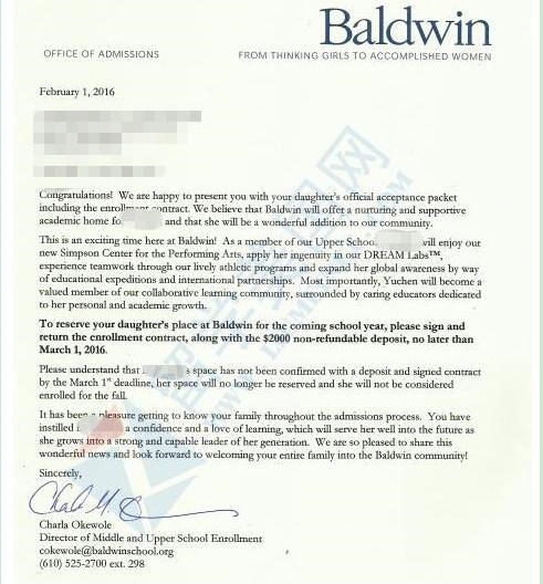 11、留美网PYC同学获美国顶级女校Baldwin School鲍德温学校的offer