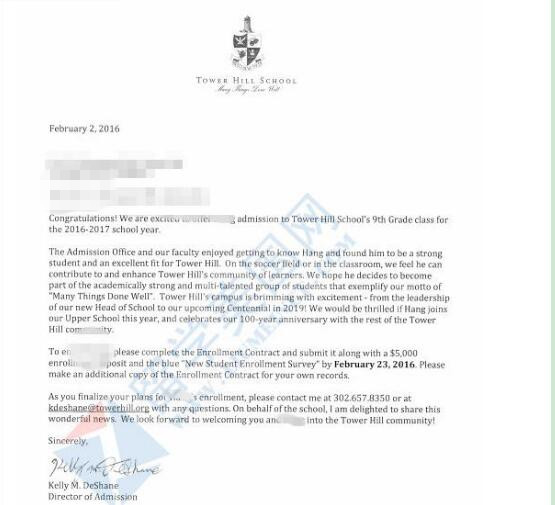 12、留美网ZH同学获得美国顶尖走读高中塔山中学的offer