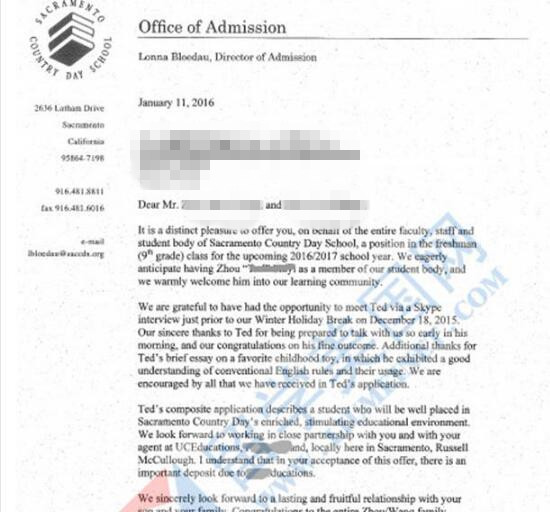 13、留美网ZSY同学获得加州最牛学府萨克拉门托中学的offer