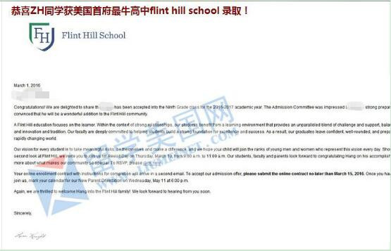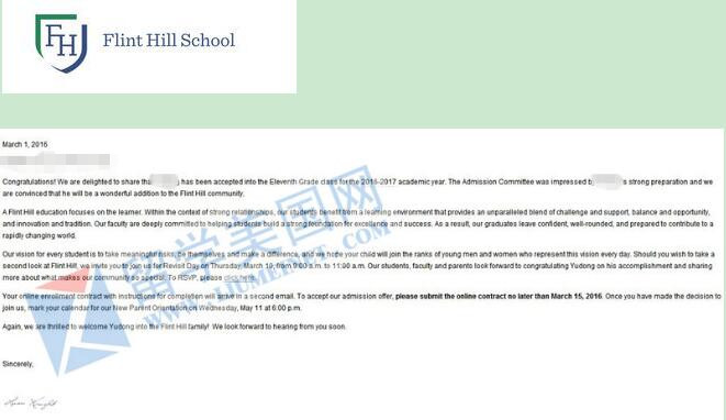 8、留美网ZH同学获美国首府最牛高中弗林特山中学offer