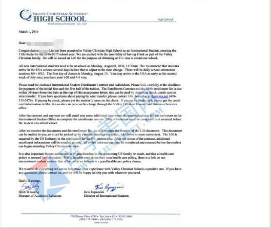9、留美网林同学硅谷地区最好高中之一的山谷基督中学的offer