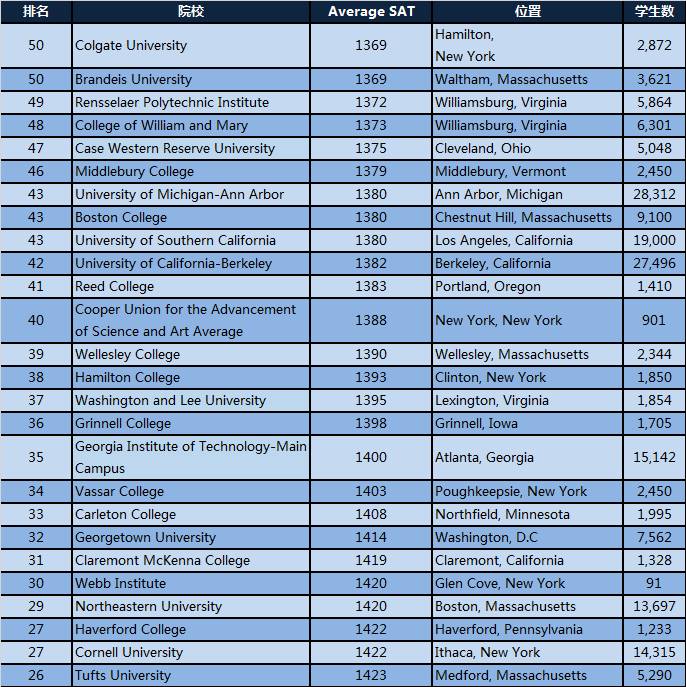 今天留美网给大家整理的全美最聪明的院校也是根据分数来评判的!因为几乎所有入围的名校都是要求申请者递交标准化考试成绩的——SAT或者ACT。所以这个成绩最具有代表性!