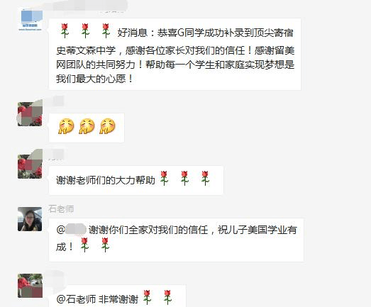 过程:申请史蒂文森(全美寄宿前50)是从WL转正的,在申请的过程中G同学转正的机会非常小,我们一直与学校保持紧密的联系,积极争取,用真诚的心和实际行动打动了学校,最终经过留美网文案团队的协同努力,以及家长的配合,这个offer终于拿到了,这是一个饱含凝聚力的offer,也证明了留美网的实力!