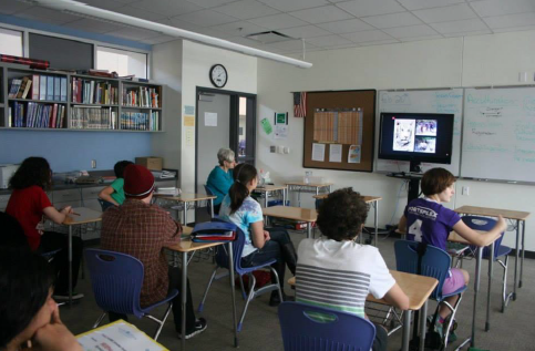 各个教室都配备有交互式音视频交流合作