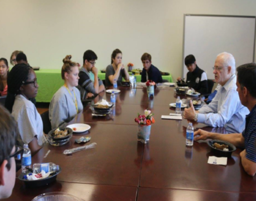 定期邀请商业和社区精英跟学生互动交流讲演。该演讲在创新实验室进行