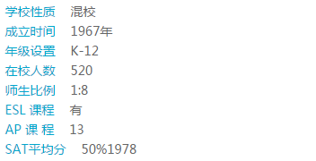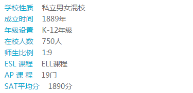 推荐理由:这是一所不折不扣的学霸型学校,学校SAT均分1890年,百年名校,AP课程19门,荣誉课程12门,学校与范德堡大学合作,毕业走向很优秀,课程难度高,有特色;数学和英语项目实力强劲,音乐教学十分突出!