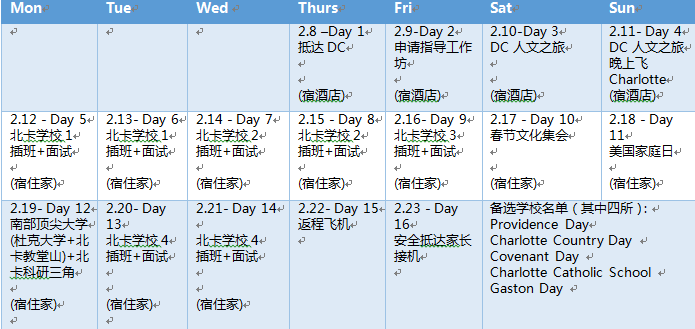 DAY5-9 北卡州优秀私立高中1-3 (详见学校介绍) 2018.2.12—2018.2.16 MON-FRI.