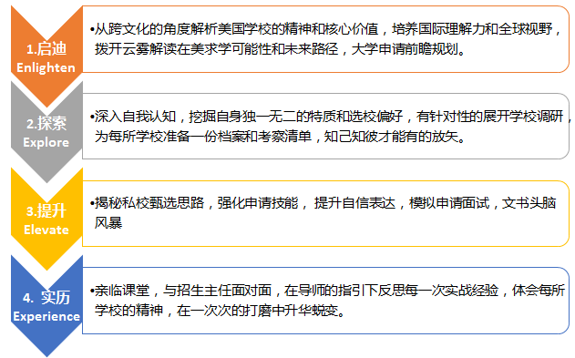 · 精心设计的申请工作坊,全方位多角度提升申请软硬实力,专业美高面试官 (为百余所私校面试近千名学生,阅人无数)授课指导,使你能带着解锁的技能和满满信心,从容的加入顶级私校的竞争。