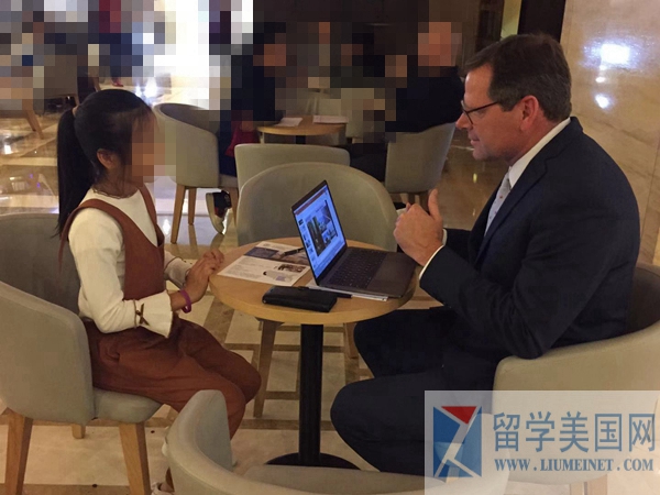 留美网学生正在和St. Bernard’s Academy面试官交谈