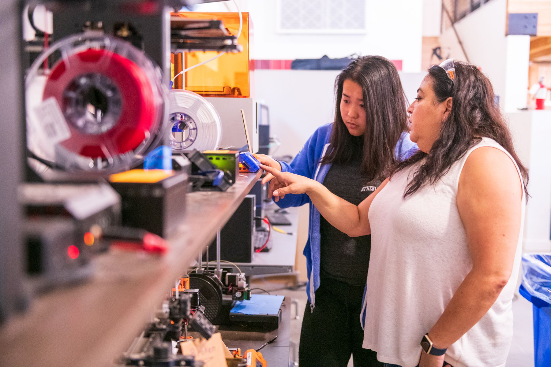 1.工程和设计,学校有自己的创客工作室,创客工作室还主持了雅典人的飞机项目——机器人技术、电动汽车项目、3D打印机、电脑控制路由器、激光切割机以及一系列工具、电子设备和其他制造设备