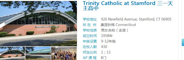斯坦福市为康州第四大城市,距离纽约1小时车程。三一天主教高中距离耶鲁大学仅1小时车程。