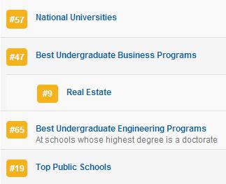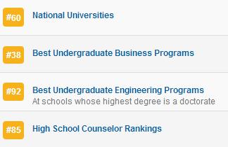 下面是14年最新的相关本科排名: