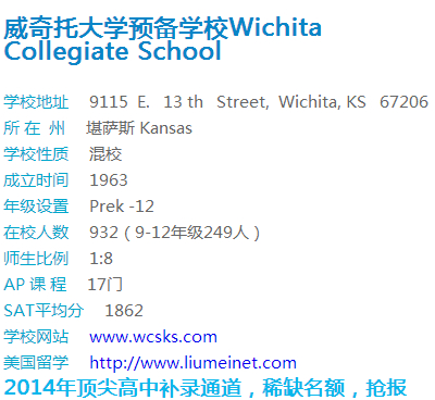 威奇托大学预备学校位于美国堪萨斯州威奇托,是美国为数不多的独立于教会的私立学校之一,同时也是堪萨斯州唯一的一所独立学校。