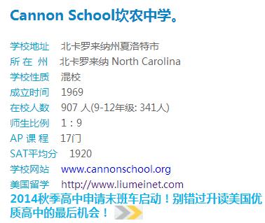 招生学校:坎农中学 cannon School