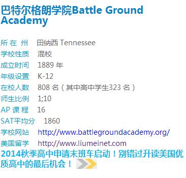 招生学校:全美TOP20大学范德堡大学附属中学Battle Ground Academy