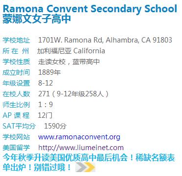 招生学校:拉蒙娜教会女校